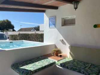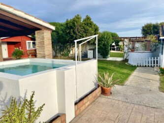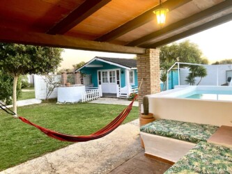 Este bungalow comparte con otras dos casas zonas comunes ajardinadas, barbacoa y un porche con hamacas, parking privado.